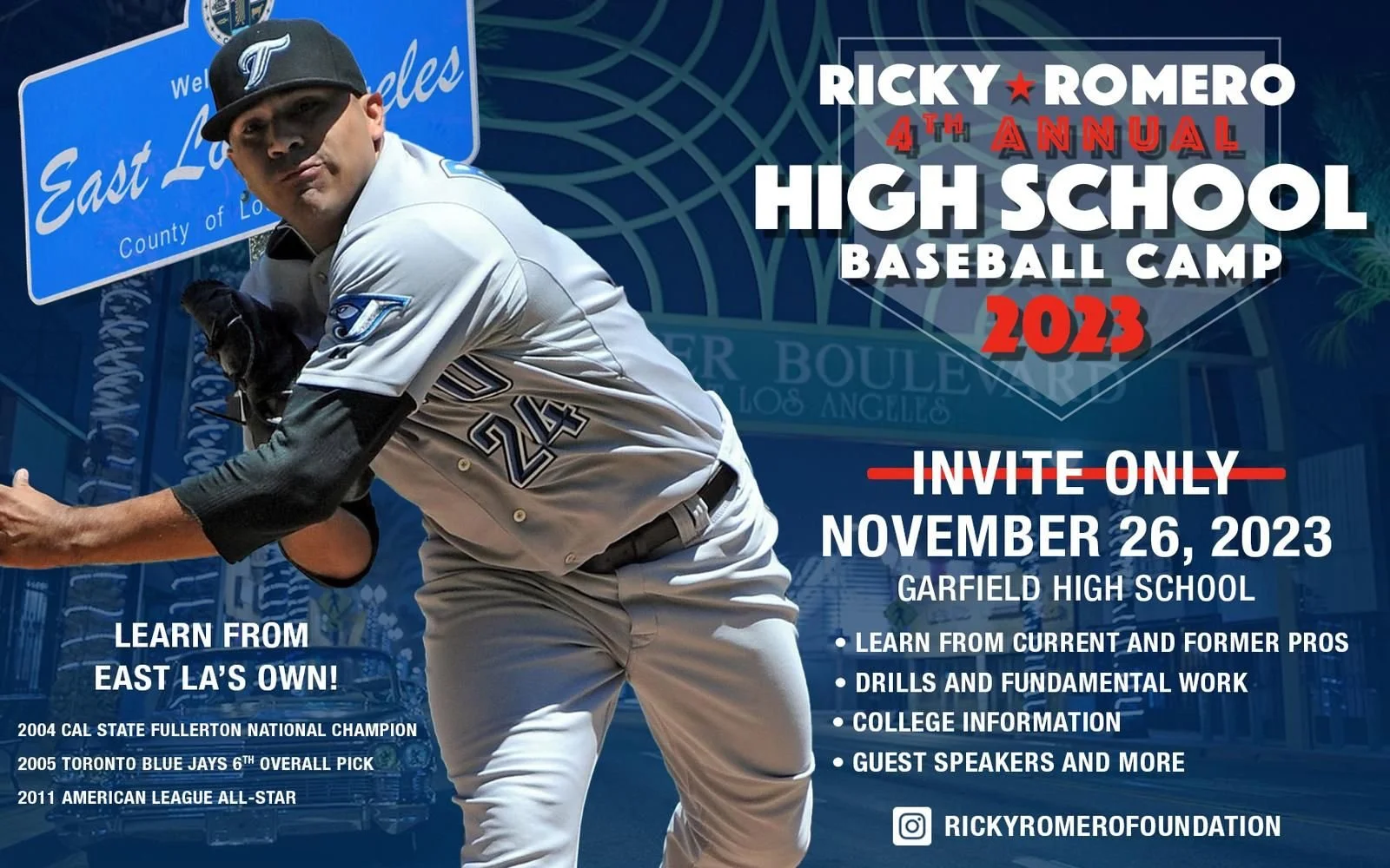 Join us on November 26, 2023 for the 4th Annual Ricky Romero Baseball Camp at Garfield High School.